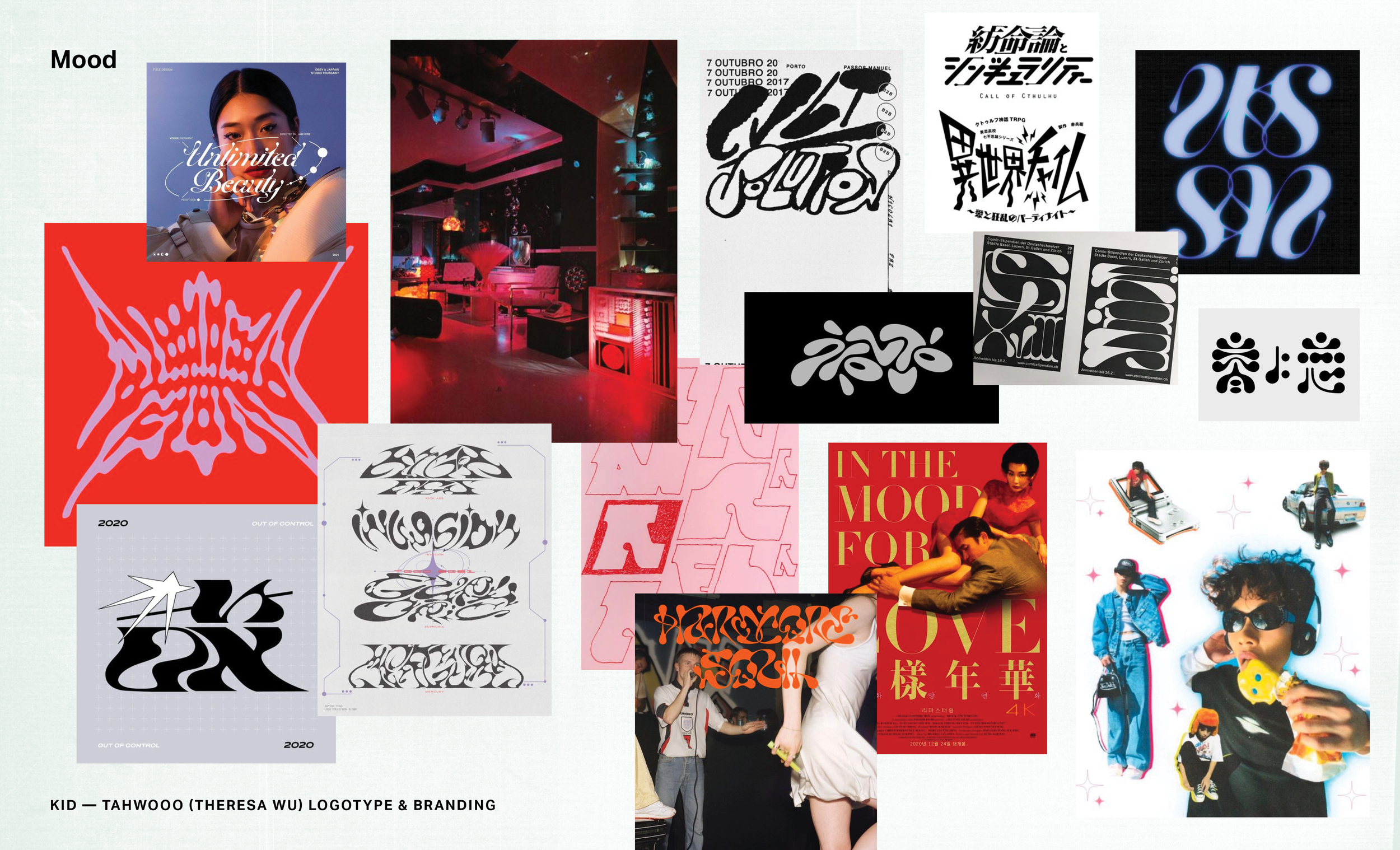 This mood board was created in collaboration with Theresa. She gravitated toward contemporary calligraphy and hand done logotypes and photography that is inspired by underground club culture and lo-fi tech. She also liked chaotic layered sketches and handwriting. There was also some editorial photography which is heavily saturated, romantic and ethereal.